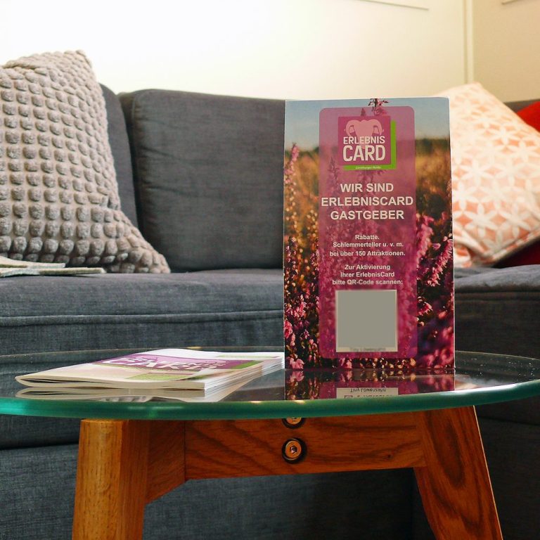 Mit der Erlebniscard Lüneburger Heide können die Gäste des Tiny Löwenzahn von vielen Rabatten teilnehmender Betriebe profitieren - etwa Gastronomie, Kultur, Tierparks oder Veranstaltungen. Diese Angebote gelten ausschließlich für die Gäste der teilnehmenden Gastgeber in der Lüneburger Heide, sind also ziemlich exklusiv.